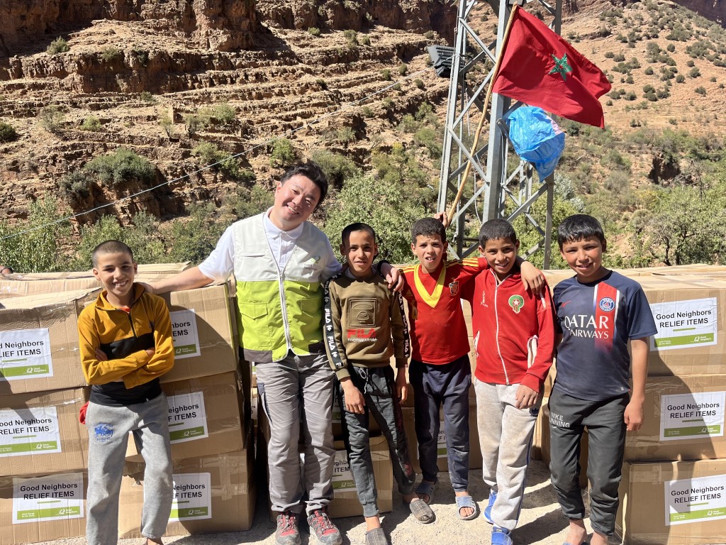 好鄰居緊急救援團隊抵達摩洛哥Casa Blanca(卡薩布蘭卡),目前已完成救援物資包裝與貼標籤的任務,並已將這些物資分發給兩個村莊(Douar Ait Tadrart, Onain Community, Taroudant.)的200戶家庭,為災民提供所需的支援和協助。
