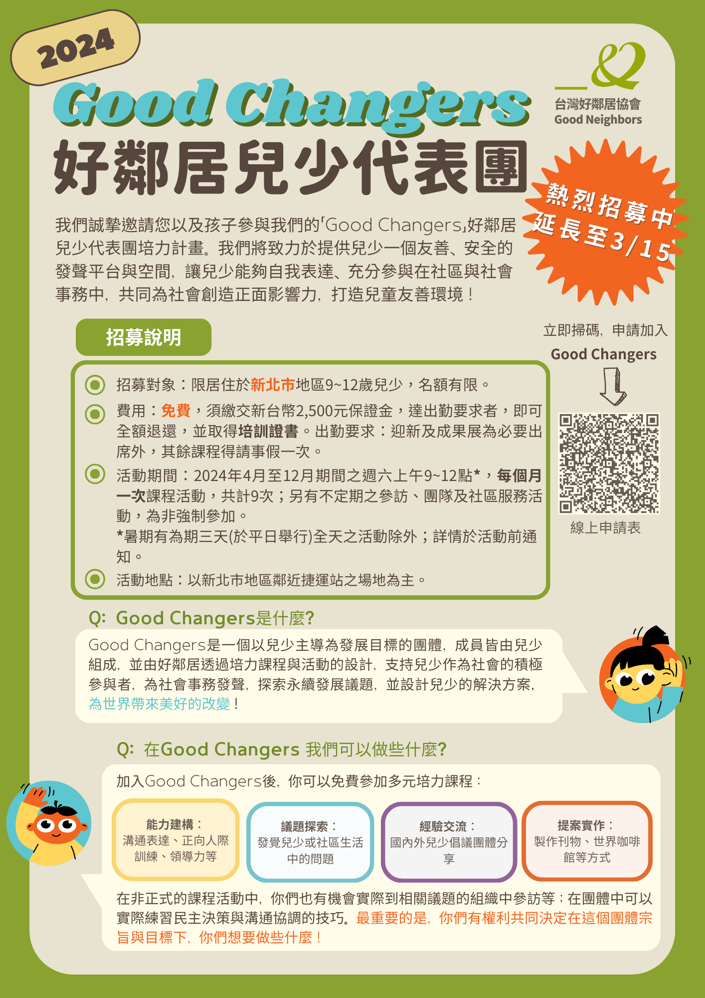 【好鄰居兒少代表團Good Changers招募中 !】
